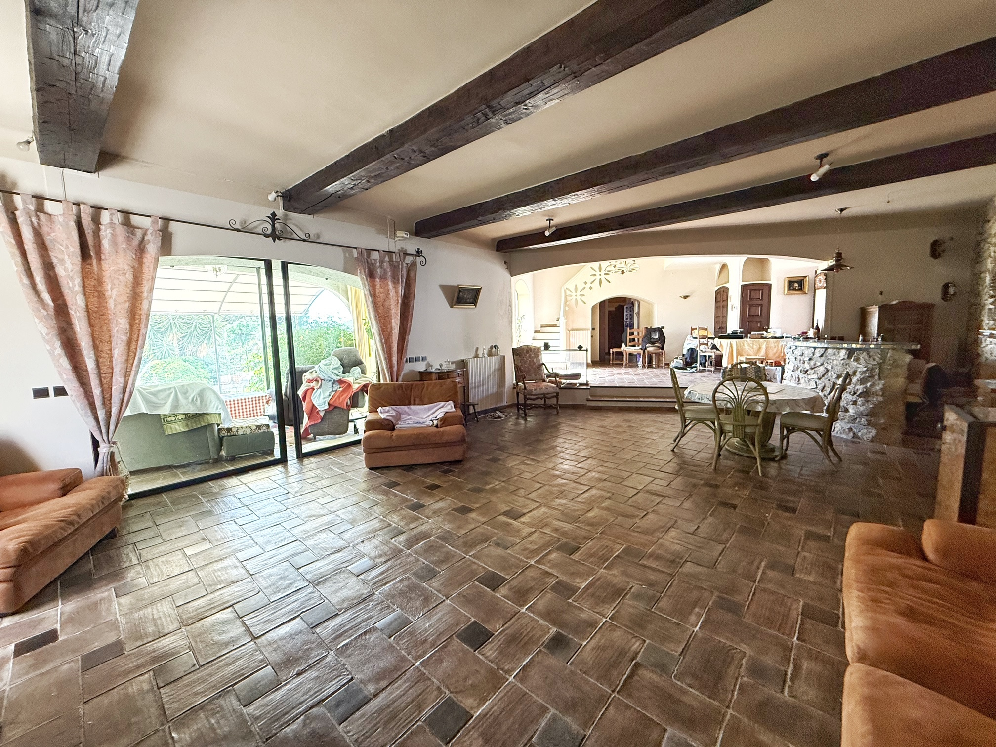 Salle à manger de 20 m2 ouverte sur un vaste salon de 52 m2, lui-même prolongé par une loggia de 20 m2, idéale pour profiter des vues sur le jardin