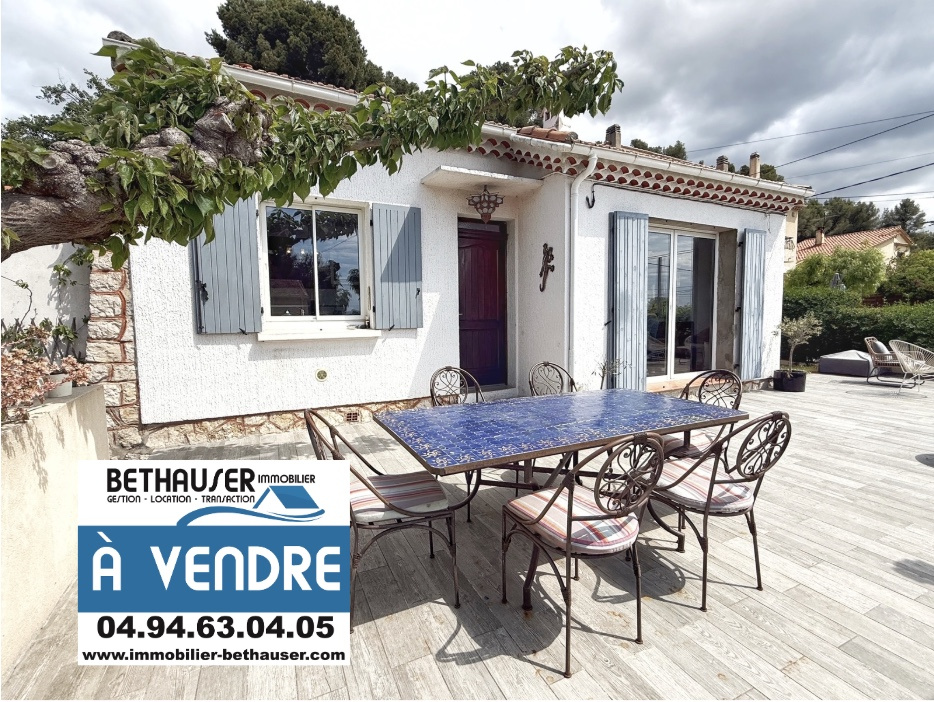 TOUON OUEST -LES BONNES HERBES: En EXCLUSIVITE Tres bien située, au calme, bien exposée, jolie villa de plain pied, entierement renovée, comprenant: cuisine ouverte séjour de 39 m2, 4 chambres, salle d'eau, terrasse. Tres beau jardin de 820 m2, Piscine / pool house, garage attenant. Chauufage centra au gaz de Ville, 3 modules de climatisation reversibles. Les atouts: Villa de plain pied, prestations actuelles, menuiseries PVC, AGENCE BETHAUSER TOULON OUEST IMMOBILIER.