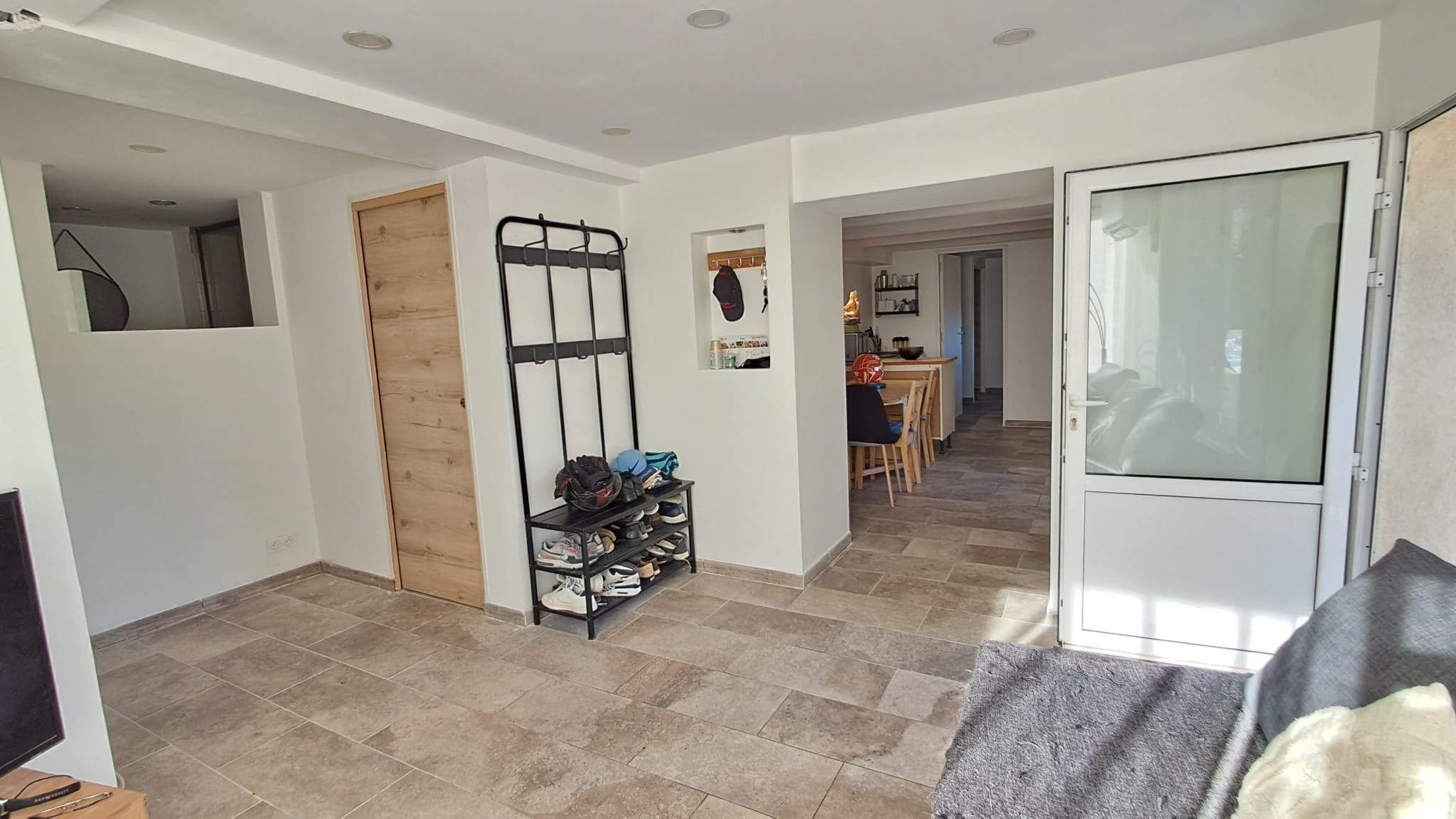 La partie T3 de 56.6m2 carrez, située en rez-de-jardin se compose d’un salon-séjour donnant sur cuisine, de deux chambres disposant chacune de leur point d’eau, d’un WC séparé, ainsi que d’une climatisation réversible dans le séjour et la chambre parentale